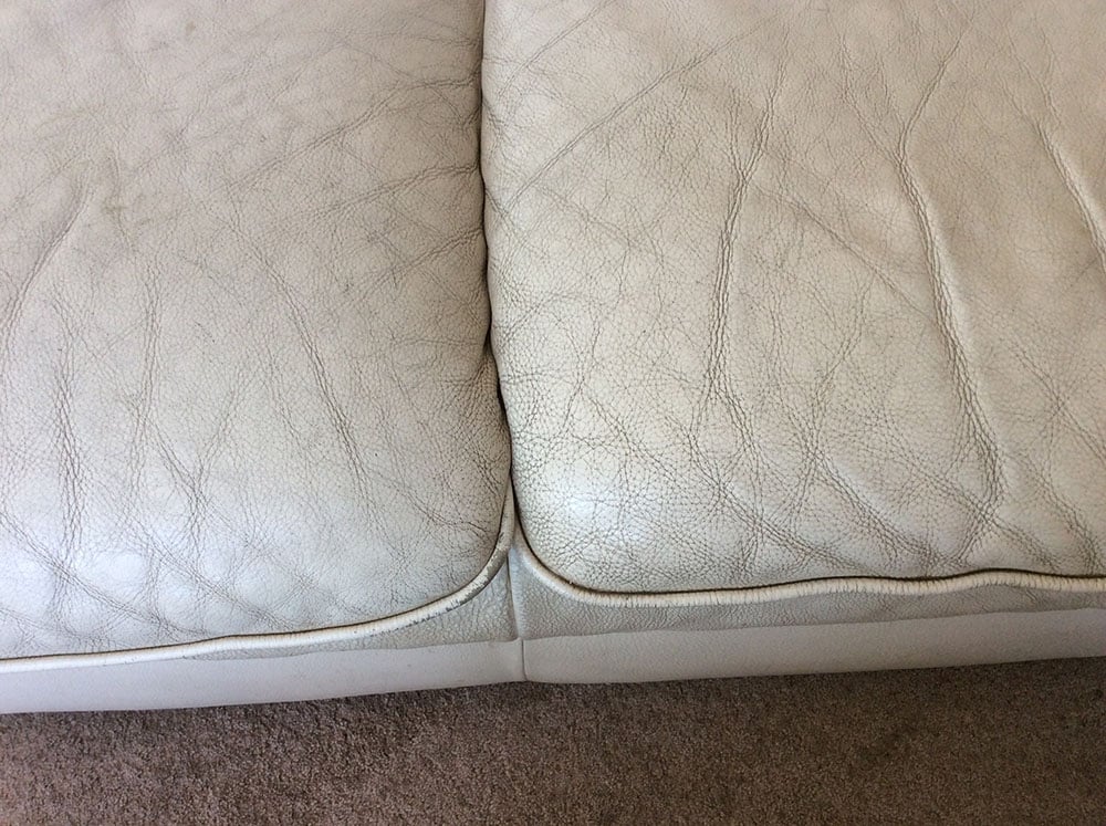 Dye transfer from jeans and dark garments can make the leather surface (especially on light-coloured leather) appear soiled and discoloured. This can make leather sofa cleaning quite a challenge!